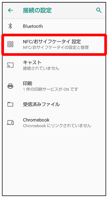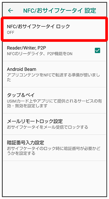 NFC/おサイフケータイ®設定画面が表示されます。
