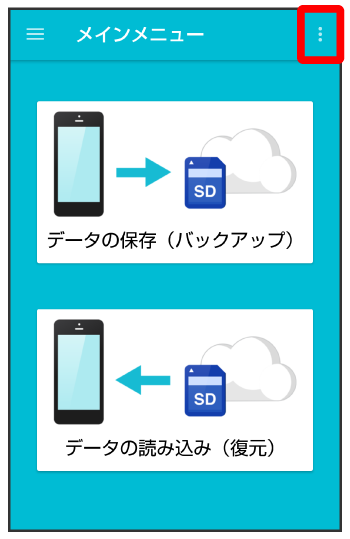 - 本体に登録されている電話帳、カレンダー、発着信履歴、画像、音楽、動画のデータの全件をサーバー/内部ストレージに保存します。1件ずつ、または一部のデータを選択して保存することはできません。