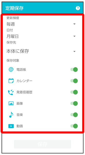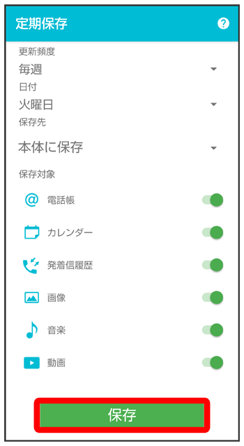 定期保存が設定されます。