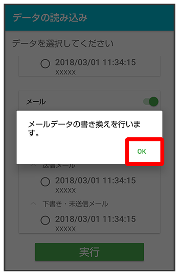 - 送信メール、下書き/未送信メールを復元するには、再度本手順を実施し、手順