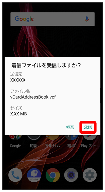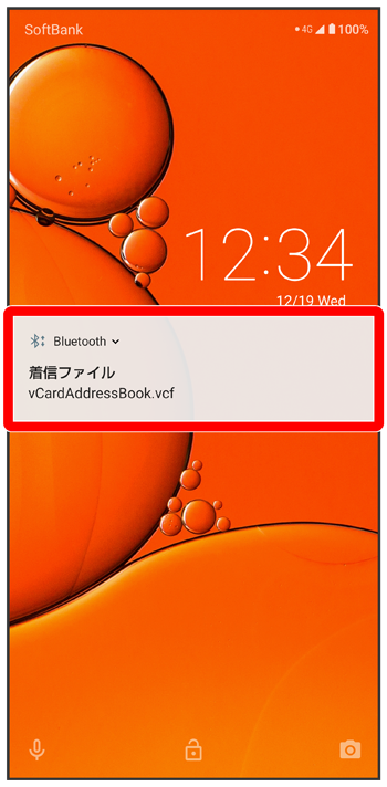 相手からデータの受信要求があると、ロック画面に通知が表示されます。次の操作を行うと、受信することができます。