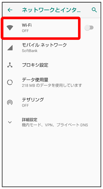 「Wi-Fi」が有効になります。