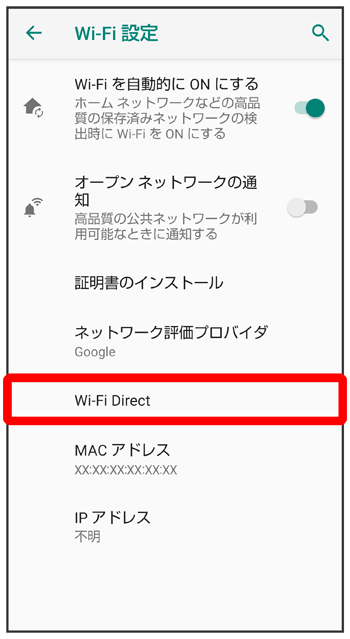 「ピアデバイス」欄に、近くにあるWi-Fi Direct規格対応機器が表示されます。
