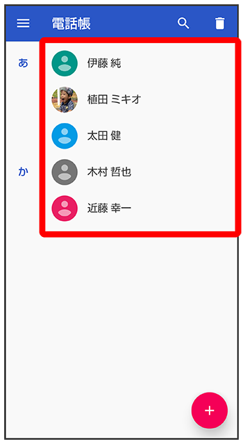 電話帳画面で連絡先をロングタッチ送信したい連絡先をタップ(