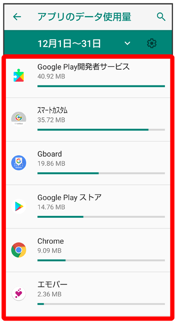 データ使用量画面が表示されます。