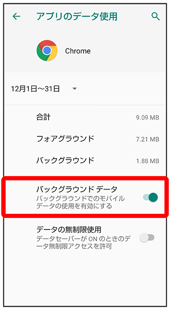 バックグラウンドのモバイルデータ通信を制限する