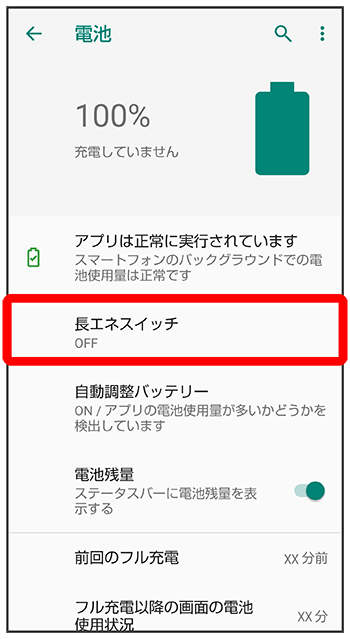 電池残量が設定した残量以下になったときに、長エネスイッチを自動的に有効にするかどうかを設定する