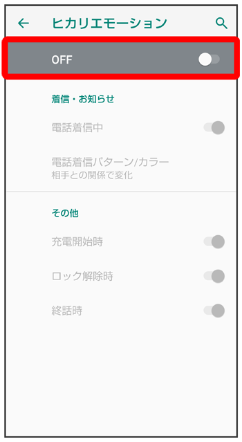 | 電話着信中 | 電話着信中にイルミネーションを表示させるかどうかを設定します。 |