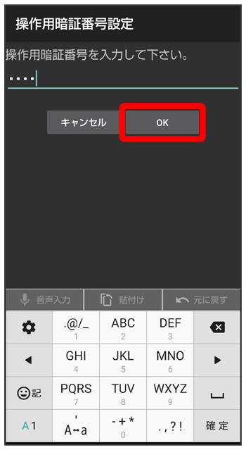 操作用暗証番号を入力
