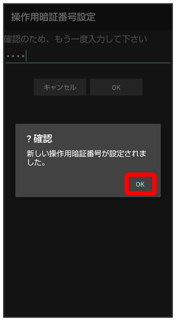 操作用暗証番号を再度入力(確認用)