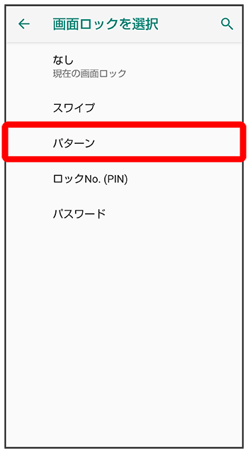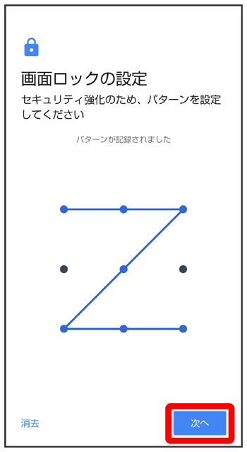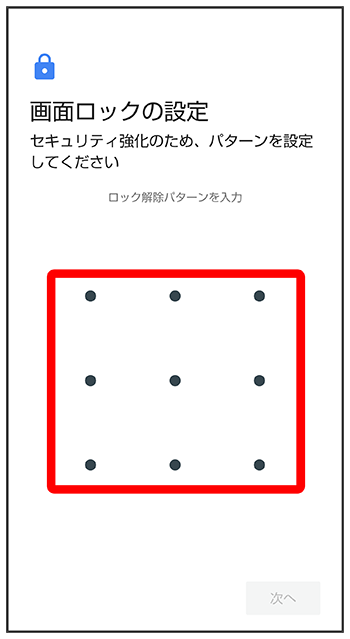 パターンを指でなぞって画面ロックを解除するように設定する