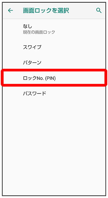 ロックNo.(PIN)で画面ロックを解除するように設定する