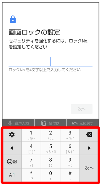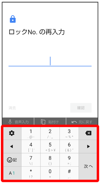 - をタップすると、入力したロックNo.(PIN)を消去できます。