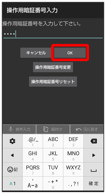 操作用暗証番号を入力