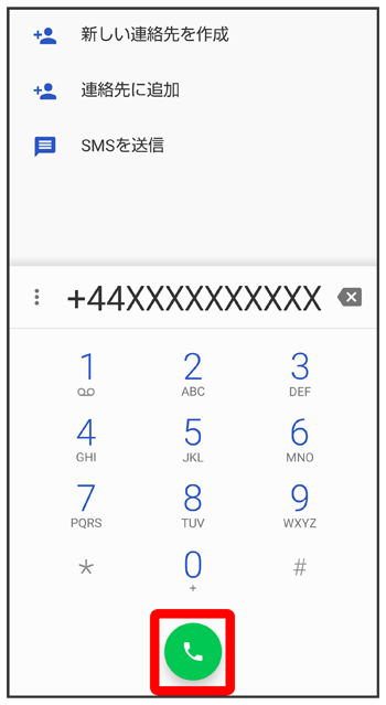 国番号のあとに相手の電話番号(先頭の「0」を除く)を入力