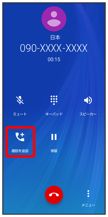 - 電話番号発信画面の上部を下にフリック通話を追加する連絡先をタップ通話を追加する電話番号をタップしても、通話を追加できます。