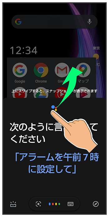 Google アシスタント画面を上にフリック