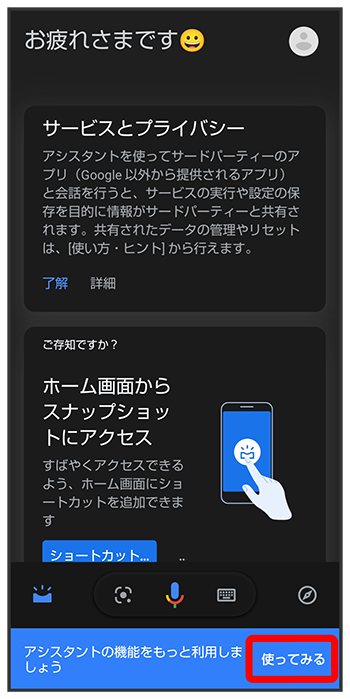 (アシスタント)が起動します。