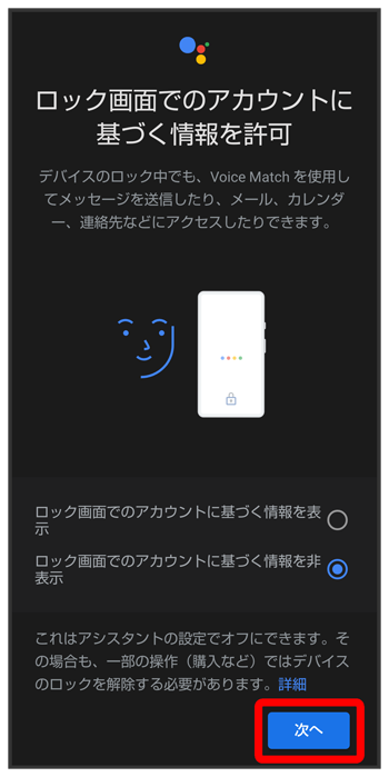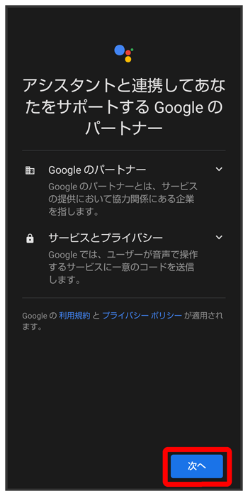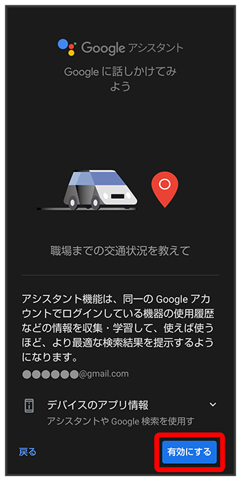 Google アシスタント機能がONに設定されます。