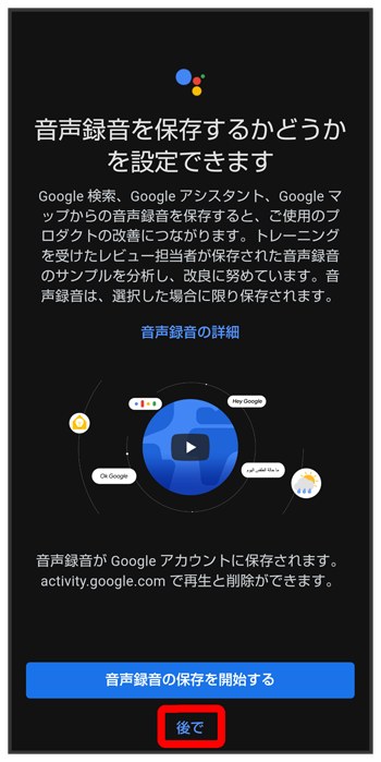 - 音声録音をGoogle アカウントに保存するときは、をタップします。