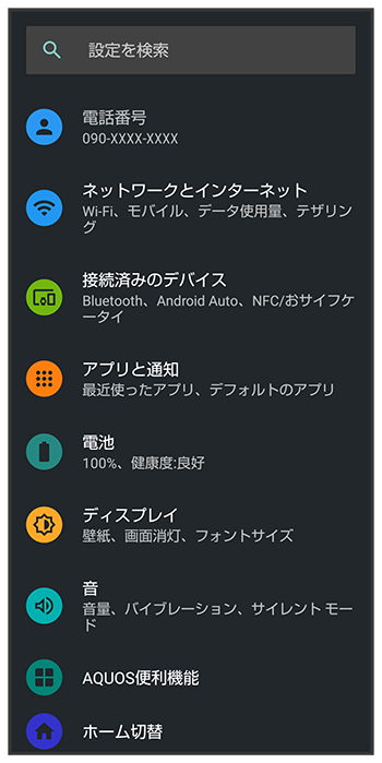 | アプリと通知 | 操作が一部変更されます。 詳しくは、「アプリと通知の設定について」を参照してください。 |