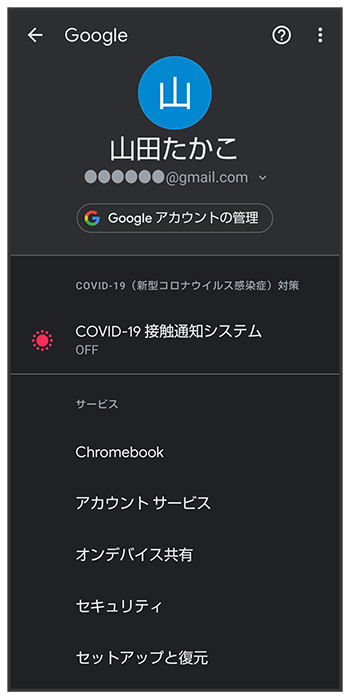 | Google アカウントの管理 | Google アカウントについて設定します。 |