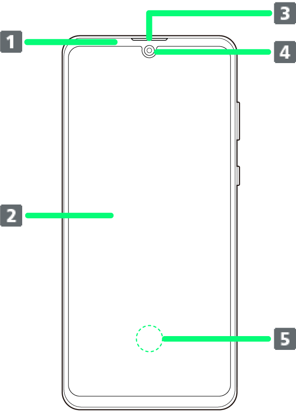 | 受話口/スピーカー | 通話相手の声、音楽や動画などの音声が聞こえます。 |