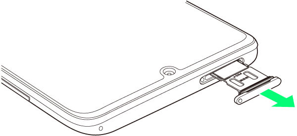 - ディスプレイを上にして、カードトレイを引き出してください。ディスプレイを下にしたり、本機を立てた状態でカードトレイを引き出すと、SIMカードがカードトレイから外れ、紛失する可能性があります。