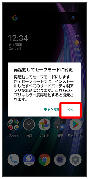 - セーフモードで電源を入れると、追加していたウィジェットが削除されることがあります。