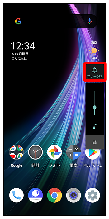(マナーOFF)に変わり、マナーモードが解除されます。