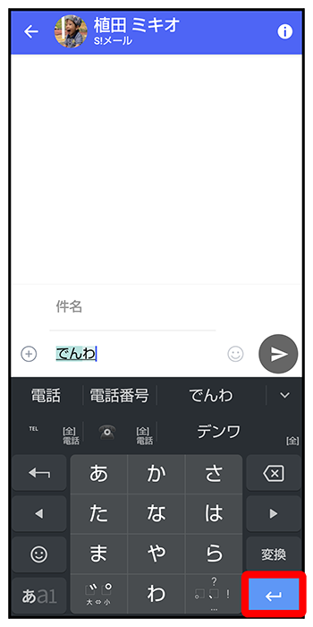 をタップしたあと、次の文字を入力します。入力した文字の背景色が変わったあとは、そのまま次の文字が入力できます。 - キーをくり返しタップせず、キーをロングタッチしたときに表示されるキー入力ガイドを利用して文字を入力することもできます。詳しくは、「フリック入力について」を参照してください。