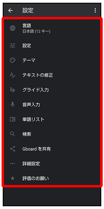 | テキストの修正 | 入力候補や学習機能について設定できます。 |