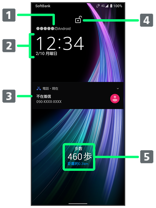 ロック画面は、電源を入れたときや、画面消灯(画面ロック)時に電源キーを押したときに表示される、本機への入口となる画面です。