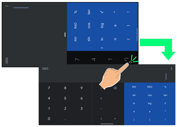 をタップすると、表示画面が横表示に切り替わります。縦表示に切り替えるときは、本機を縦向きに回転させて