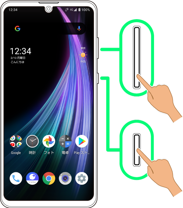 電源キーを3秒以上長押しと操作しても、スクリーンショットを撮ることができます。