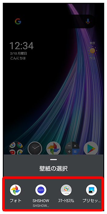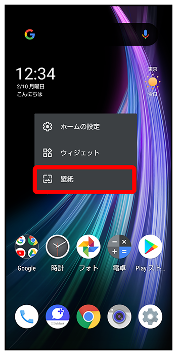 ホーム画面のアイコンがない場所をロングタッチ画面に従って操作こちらで検索できます
