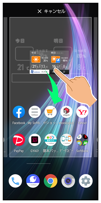 ホーム画面でウィジェットをロングタッチ「削除」までドラッグ