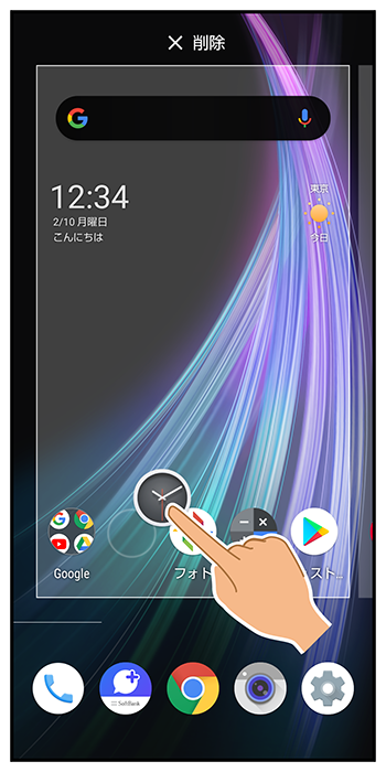 ホーム画面でフォルダをロングタッチ「削除」までドラッグ- お気に入りトレイでも同様に操作できます。
