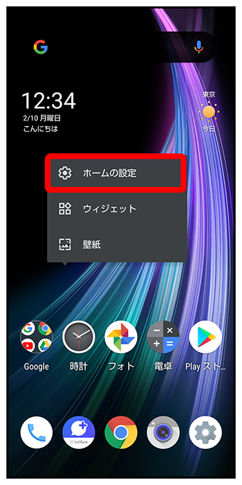 | Google アプリの表示 | ホーム画面の左端に、ニュースや天気などの情報を表示するかどうかを設定します。 |