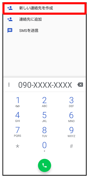 ダイヤルキーをタップして登録したい電話番号を入力