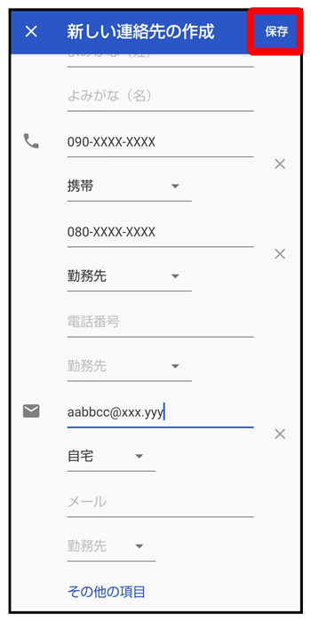 連絡先の登録が完了します。