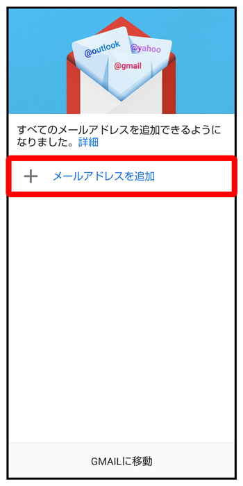 (Gmail)を起動すると、アカウント設定画面が表示され、設定操作を行うことができます。