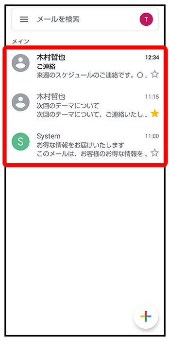 - メール一覧画面で、削除するメールのアイコンをタップ(