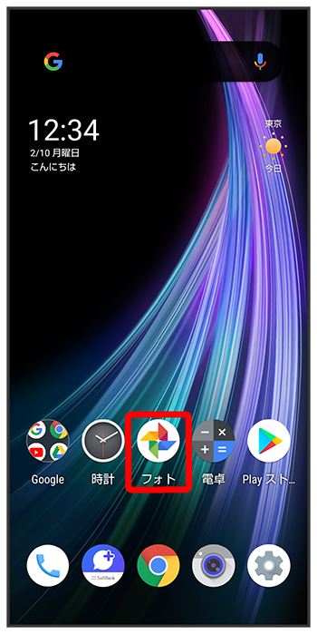 が表示されていないときは、画面をタップすると表示されます。- 画面を上にフリックしても表示されます。
