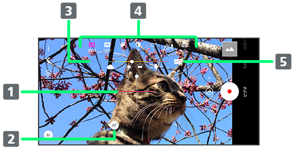 - ご利用になるカメラや撮影モード/シーンによって、画面に表示されるアイコンや利用できる機能・設定は異なります。