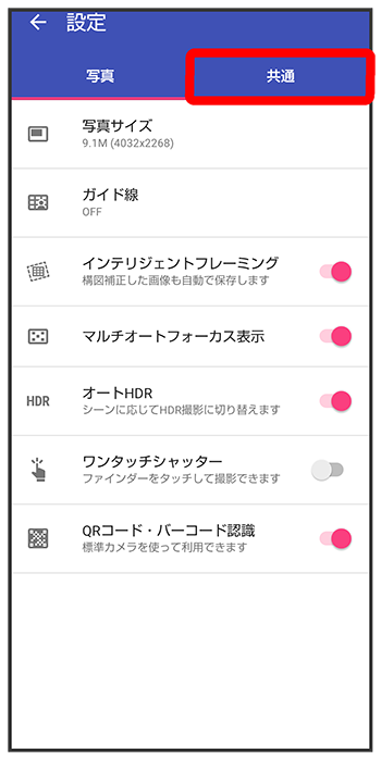 | セルフタイマー表示 | 写真/動画撮影画面にセルフタイマーアイコンを表示するかどうかを設定します。 |