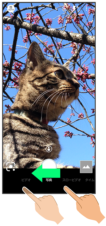 - スロービデオのフレーム数を変更するには、画面上部を下にフリックして
