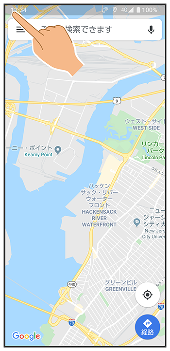 画面の左上(右上)の角に触れる