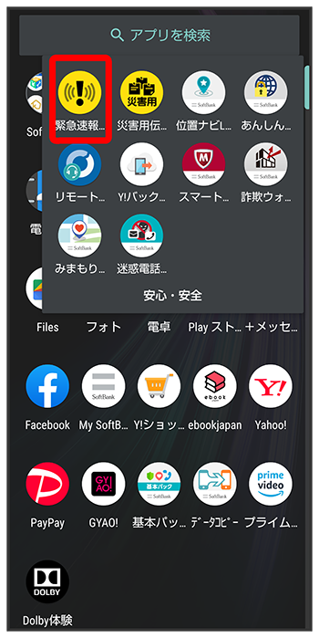 ホーム画面を上にフリック緊急速報メールを利用するかどうかを設定する