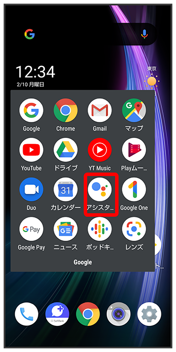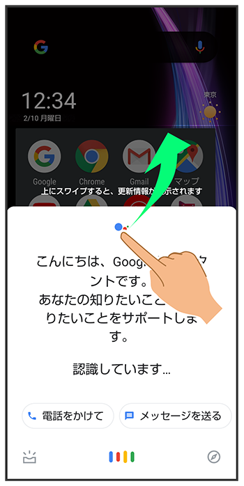 - 電源キーを長押しするか、画面下部の左/右端から上へフリックしても、